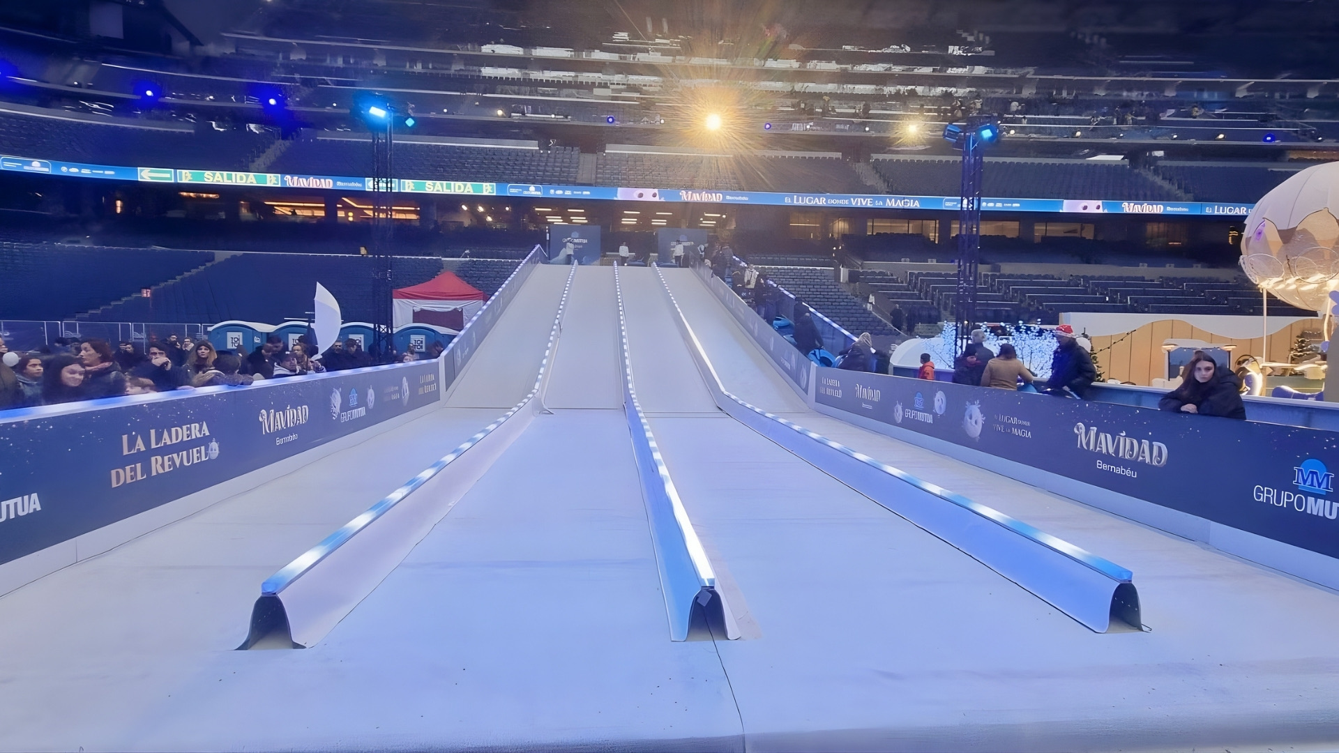 S ponosom objavljujemo još jedan važan međunarodni projekt u našem portfelju — postavljanje impresivnog ledenog tobogana unutar legendarne Santiago Bernabéu arene, doma nogometnog velikana Real Madrida. Ovaj jedinstveni projekt dio je programa “MAVIDAD Bernabéu”, prvog božićnog sela ikad organiziranog u sklopu stadiona, koje je privuklo veliki interes posjetitelja iz cijelog svijeta.